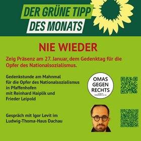 Der Grüne Tipp des Monats: Nie wieder! Zeig Präsenz am 27.01, dem Gedenktag für die Opfer des Nationalsozialismus