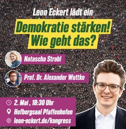 Zu Beginn geben die Autorin und Politikwissenschaftlerin Natascha Strobl und Prof. Dr. Alexander Wuttke von der LMU München Impulsvorträge. Anschließend diskutiert Leon Eckert (Bündnis 90/ Die Grünen) mit Vertreterinnen des Kreisjugendring, des Jugendparlaments und der OMAS GEGEN RECHTS.