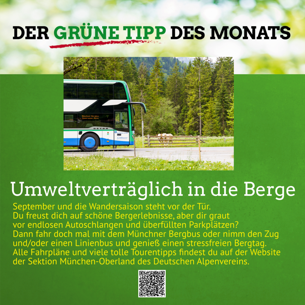Der Alpenverein München & Oberland hat mit dem Mobilitätsprojekt Münchner Bergbus einen ersten großen Lösungsansatz initiiert, um auf die Umwelt- und Verkehrsproblematik in den bayerischen Alpen zu reagieren. In Zusammenarbeit mit den Zielregionen wird ein ganzheitliches Konzept zur Tourismussteuerung und Sensibilisierung von Bergaktiven verfolgt. Der Bus steht dabei nicht in Konkurrenz zur Schiene, sondern dient als Ergänzung dieser, da Ziele angefahren werden, die aktuell schwer mit den öffentlichen Verkehrsmitteln erreichbar sind. In den Zielregionen sollen vor allem der motorisierte Individualverkehr und seine Folgen mit überfüllten Parkplätzen und Staupotenzialen reduziert und damit ein Beitrag zu aktivem Klimaschutz geleistet werden.