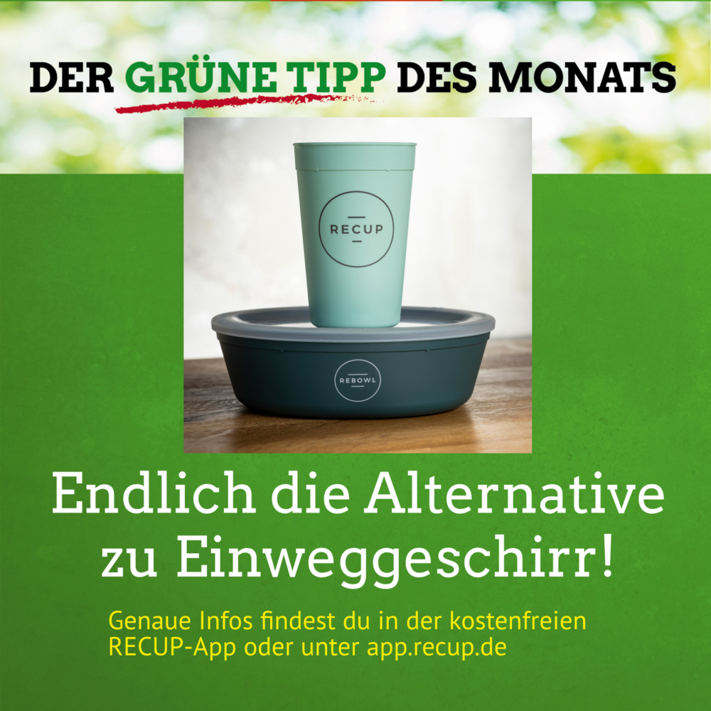 Dann versuch’s doch einmal mit einem ressourcenschonenden Mehrweg-System und nutze das deutschlandweite Netzwerk von RECUP und REBOWL.