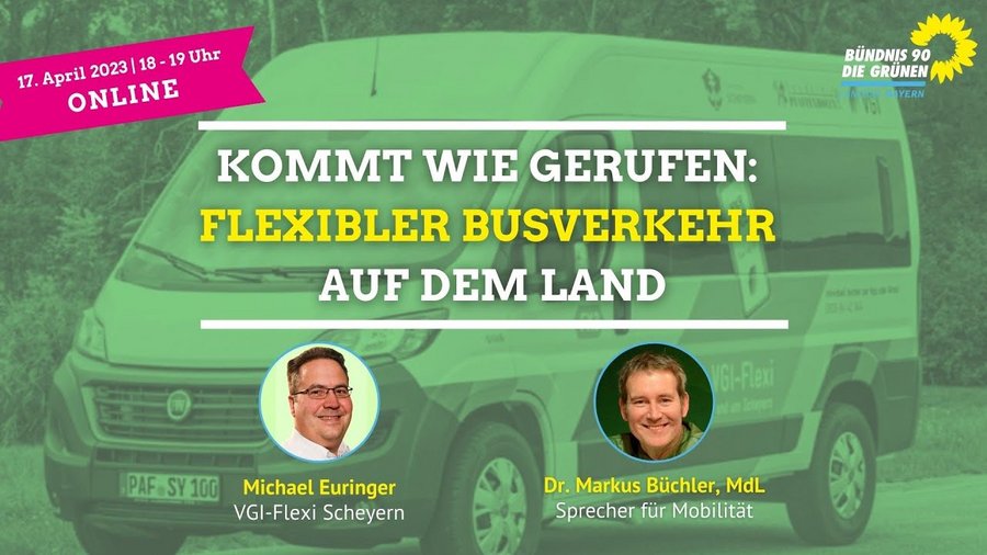 Ein solch flexibles Angebot auf Bestellung, das auch gebuchte Routen bündeln kann (ride-pooling) hat die bayerische Gemeinde Scheyern mit dem VGI-Flexi nach einigen Jahren Vorbereitung realisiert. Hier fährt nun CO2-neutral ein Bus mit Biogas, der direkt vor der Tür oder maximal 300 m auch von entlegenen Start-/Zielorten entfernt eine Bushaltestelle ansteuert. Im Jahr 2024 haben mehr als 32000 Fahrgäste den Scheyrer Siebensitzer-Bus genutzt.