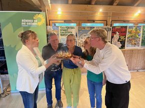 Vor Ort gratulierte zudem Bettina Markl, Kreisvorsitzende und Landratskandidatin. Sie dankte dem Ortsverband für drei Jahrzehnte Engagement für Umwelt, Gerechtigkeit und Zusammenhalt, gab einen Ausblick auf die kommende Kommunalwahl und überreichte gemeinsam mit einem Geburtstagskuchen symbolisch den Staffelstab für die kommenden Jahre.