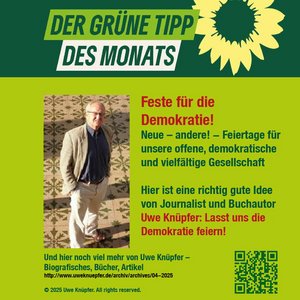 Irritiert es dich auch schon länger, dass wir in unserem Land vorwiegend religiöse Fest begehen? Und dazu – trotz der inzwischen unübersehbaren Vielfalt – ausschließlich christliche? Hier ist eine richtig gute Idee von Journalist und Buchautor Uwe Knüpfer: Lasst uns die Demokratie feiern!
