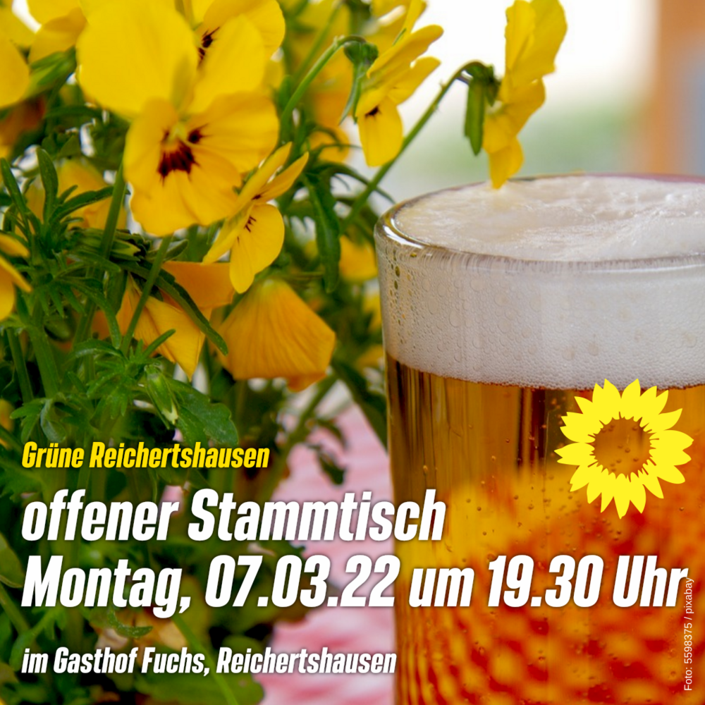 m Montag, den 07. März 2022 um 19.30 Uhr könnt ihr uns beim offenen grünen Stammtisch im Gasthof Fuchs, Pfaffenhofener Str. 8, 85293 Reichertshausen, treffen.