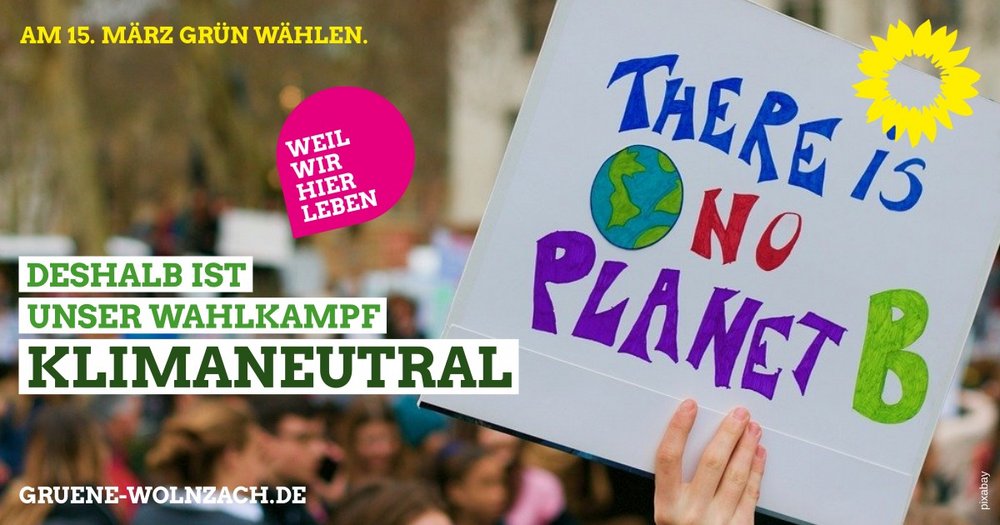 In Wolnzach wird am 15. März gewählt. Weil die Wolnzacher Grünen für nachhaltige Politik und Klimaschutz stehen, handeln sie auch dementsprechend: Alle Emissionen, die während des Wahlkampfs entstehen, werden ausgeglichen. Der gesamte Wahlkampf ist somit klimaneutral.